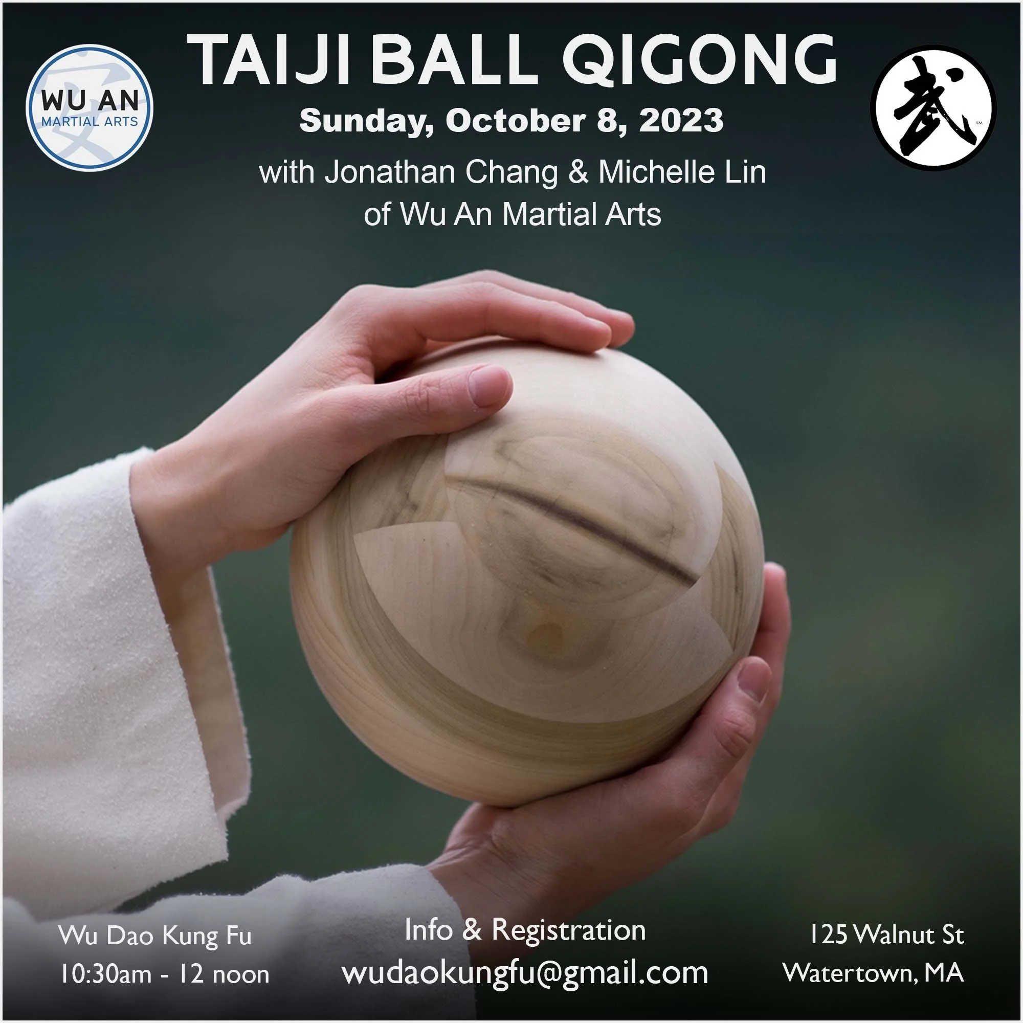 Come learn with us! This workshop will be from 10:30am-12pm at Wu Dao Kung Fu & Tai Chi in Watertown. The event is $60. You will want to bring a Tai Chi “ball” to work with, any sports ball with a diameter of between 6” or 12” should suffice. To register and secure your spot please contact Lindsay at wudaokungfu@gmail.com . Non- Wu Dao students can use PayPal to that same address or bring cash. We hope to see you there!